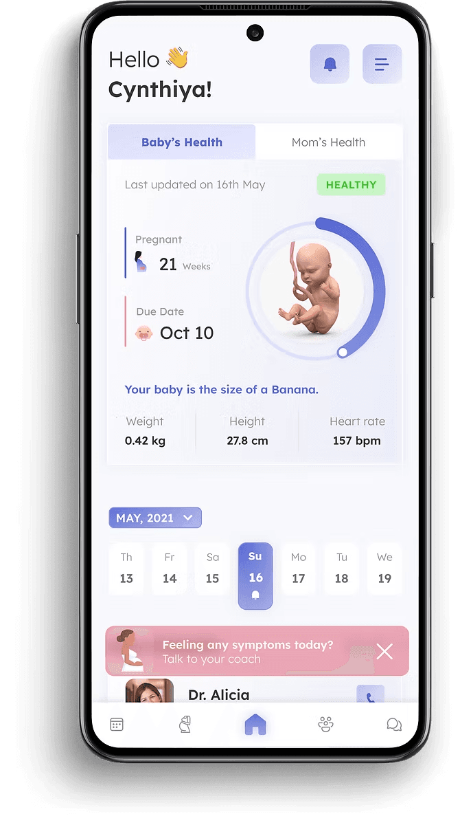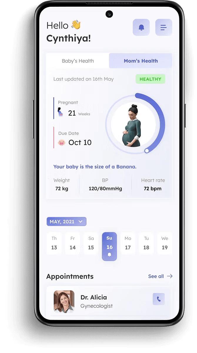 Designed Mothercare screens with intuitive navigation, clear content, and a modern interface for a seamless pregnancy .